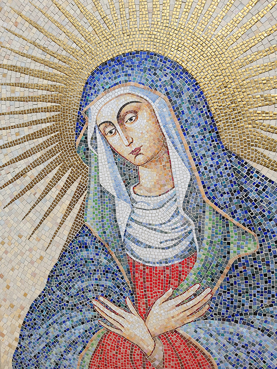 Matka Boska Ostrobramska, 2024, mozaika, fragment, kościół pw. M.B. Miłosierdzia - Ruciane Nida